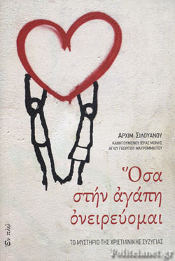 «Όσα στην αγάπη ονειρεύομαι. Το μυστήριο της χριστιανικής συζυγίας». Αρχιμ. Σιλουανού, Καθηγουμένου Ιεράς Μονής Αγίου Γεωργίου Μαυρομματίου, εκδ. Εν πλω.